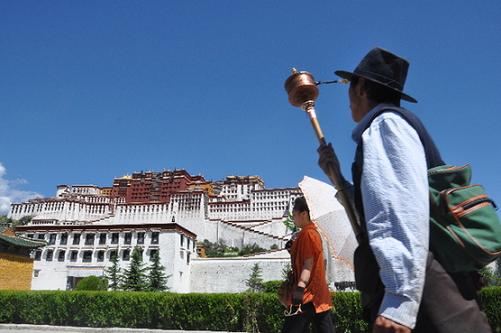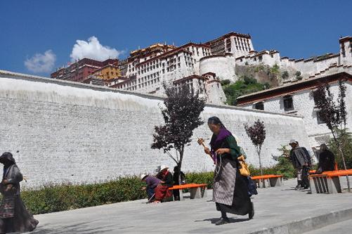 信教群眾在布達拉宮北面的轉經(jīng)道上轉經(jīng)